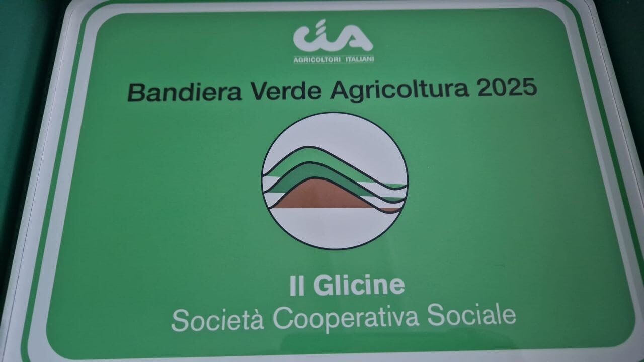 Siamo molto felici di annunciare che la Cooperativa sociale Il Glicine si è aggiudicato il premio Bandiera Verde 2025. Il riconoscimento è promosso da CIA-Agricoltori Italiani, e ogni anno premia i protagonisti dell’agricoltura italiana che hanno contribuito a valorizzare il patrimonio paesaggistico, ambientale ed enogastronomico del Paese.